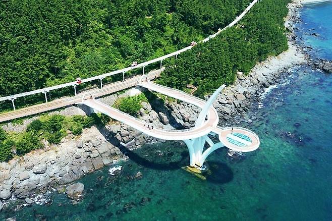 청사포 다릿돌전망대 옆에는 새로운 랜드마크, 해월전망대가 자리하고 있다.