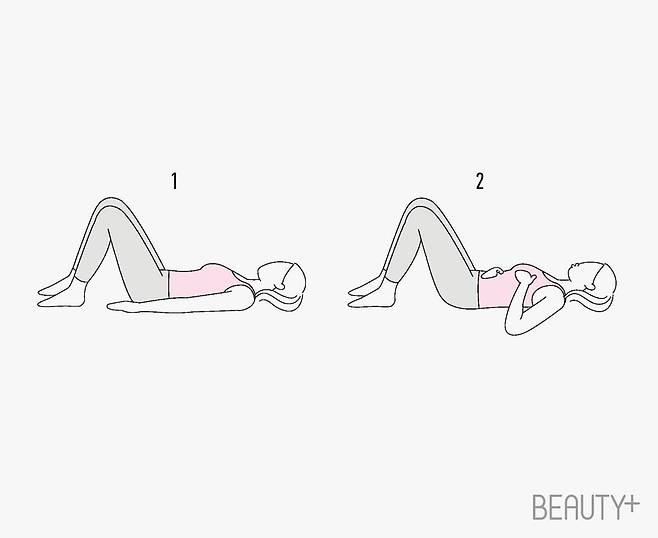 2 두 다리를 90도로 구부린 채 들어 올린다.