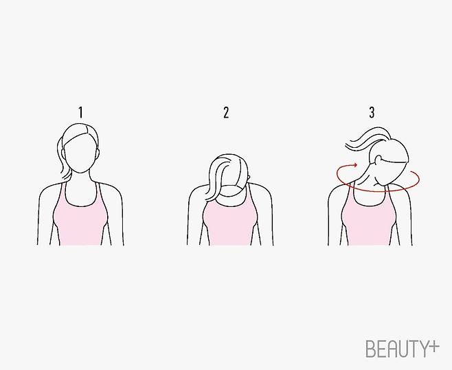 3 고개를 왼쪽으로 천천히 돌리면서 귀가 거의 어깨에 닿도록 하고, 이어서 머리를 뒤로 넘기면서 원을 그리듯 오른쪽으로 이동한다.