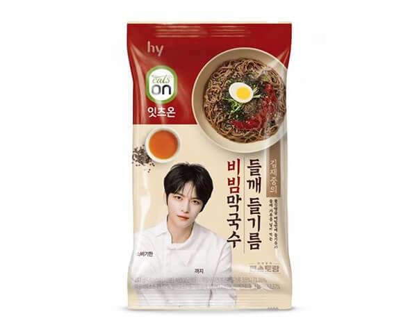 Hy는 편스토랑 밀키트 ‘들깨 들기름 비빔 막국수’를 출시했다. 신제품은 KBS ‘편스토랑 모두의 저녁’ 편 우승 메뉴다. 가수 김재중이 선보인 비빔 막국수를 간단하게 조리해 먹을 수 있도록 제품화했다. 매콤하면서 새콤달콤한 특제 비빔 소스에 들기름을 더했으며, 들깨 가루와 김깨고명을 추가해 고소한 맛을 구현했다. 면발은 고소하게 볶은 메밀가루를 넣고 쪄낸 반죽을 수타 방식으로 제면했다. 공식몰에서 5봉지 묶음 패키지를 21,600원의 판매가로 판매 중이다.
