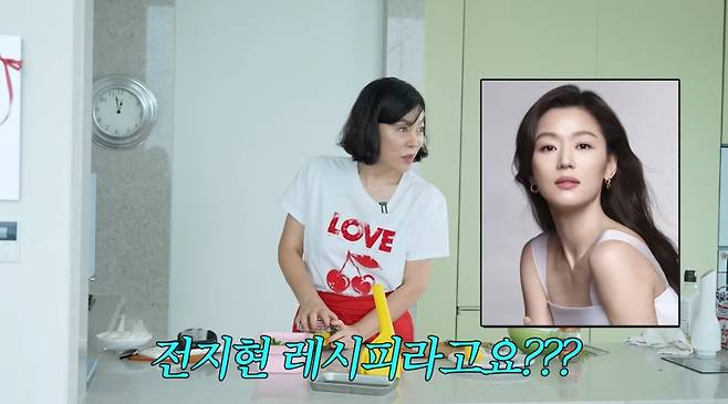 그중 단연 사람들의 이목이 집중된 것은 바로 전지현에게서 배웠다는 냉토마토국수였다. 최화정은 "전지현 레시피에는 깻잎이 들어가지만 나는 깻잎이 없어서 바질을 넣었다"며 냉동 토마토와 바질, 소면 등의 재료를 이용해 국수를 만들었다.