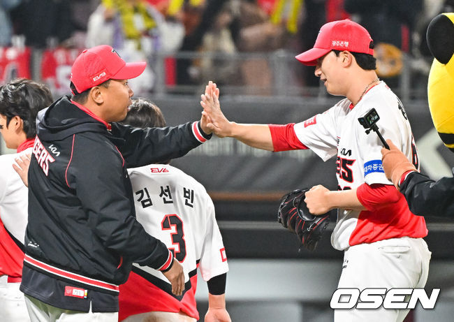 이범호 감독은 "크로우가 투구수(93구)로 인해 많은 이닝을 책임져주지는 못했지만 실점을 허용하지 않고 팀 승리에 큰 기여를 해줬다. 오늘 전상현과 장현식이 나오지 못하는 상황에서 곽도규 등 불펜진이 최소실점으로 상대 타선을 잘 막아줬고, 팀의 마무리 정해영이 오늘도 든든하게 팀 승리를 지켜줬다"고 박수를 보냈다.