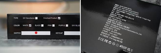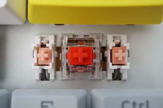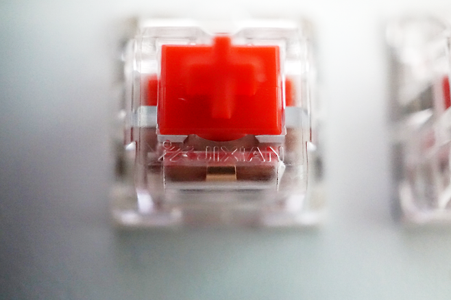 스위치는 JIXIAN의 적축 스위치를 사용하고 있으며 리니어 타입에 입력압력 45gf으로 작동하게 됩니다. 스위치는 PCB에 솔더링 되어 있어 다른 스위치로의 교체는 어렵습니다만 솔더링 되어 있는 스위치는 단단하게 결합되어 있기 때문에 스위치가 흔들리지 않는 장점이 있습니다.