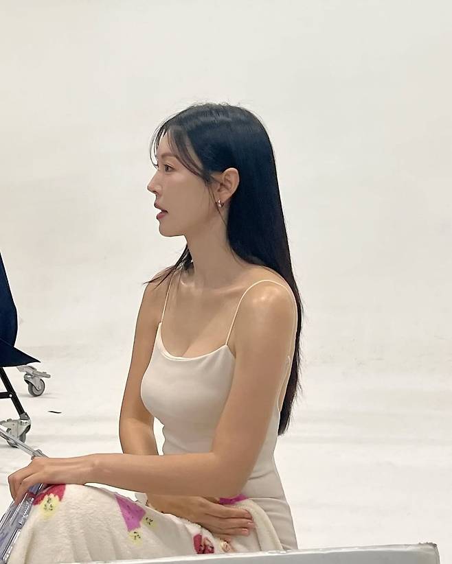 배경은 심플한 화이트 스튜디오로, 그녀의 우아한 실루엣과 맑은 피부톤이 더욱 부각되는 구도로 연출됐다. 민트 톤 슬리브리스는 고급스러운 컬러감이 돋보이며, 단정한 라운드 넥 디자인으로 과하지 않게 여성미를 강조했다. 어깨라인은 슬림하게 드러나 있어 군더더기 없이 시크한 무드를 살렸고, 민소매 특유의 시원한 분위기가 초여름 시즌에 제격이다.