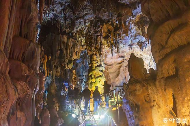 “더울 수 있으니 외투는 차에 벗어놓고 가볍게 들어가세요.” 영하 10도에 육박하는 날씨에 덥다니…. 울진 성류굴에 먼저 들어갔다 나온 사람들이 건네는 조언이었다. 단양 고수동굴, 삼척 환선굴 등 석회동굴은 여름철에는 천연 에어컨 바람을 맞는 듯 시원한 피서지로 손꼽히낟. 그런데 겨울에 찾아가니 따스한 온기가 가득하다. “밖은 영하 10도인데 여긴 15도네”라는 감탄사가 나오는 순간, 계절의 벽이 무너진다.