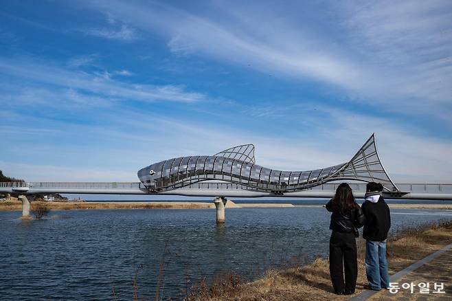 성류굴에서 차로 10분 달려 도착한 남대천 하구에는 은어다리가 있다. 남대천은 국내 최대의 은어서식처. 산란철에 이 곳을 찾으면 바다에서 강으로 회귀하는 반짝이는 은어 떼의 장관을 볼 수 있다. 은어는 연어처럼 바다와 강을 오가며 사는 물고기다.