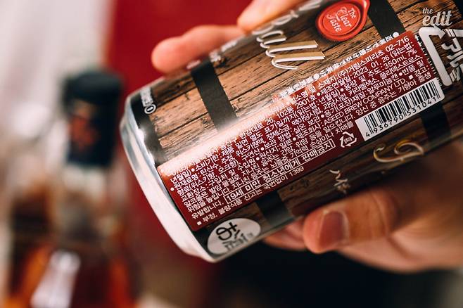 다만 이를 위해서는 소비자가 하이볼 진짜 위스키가 들어갔는지 확인하는 방법을 알아야 한다. 방법은 간단하다. 하이볼 캔 뒷면의 성분 정보를 확인해 보면 위스키가 들어간 경우에는 ‘위스키’가, 그렇지 않은 경우에는 ‘주정’, ‘오크칩’ 등이 적혀있는 것으로 구분할 수 있다.