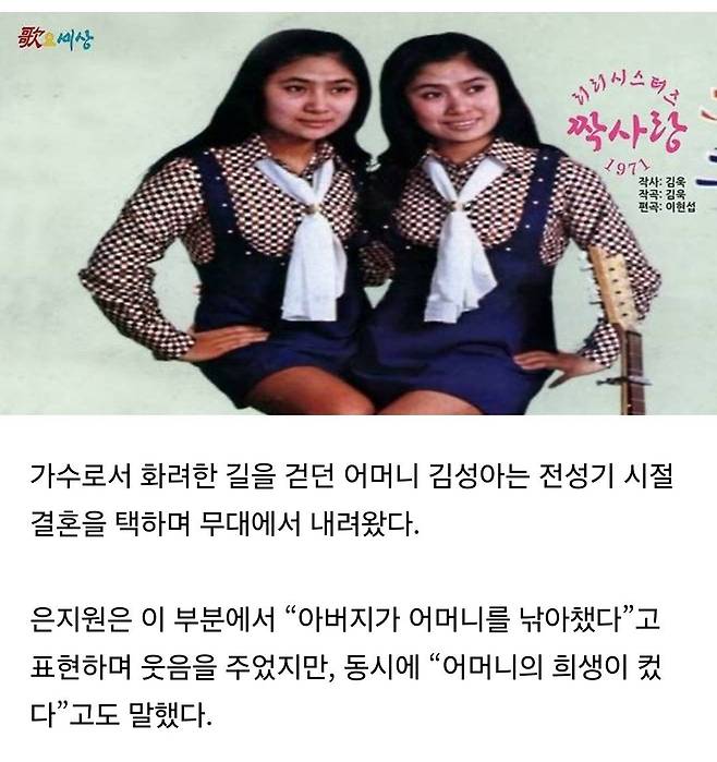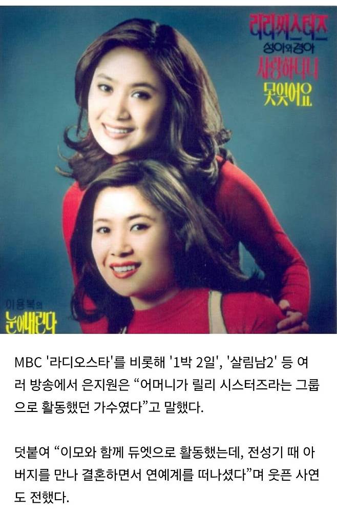 알고보니 70년대 톱가수였다는 은지원 엄마