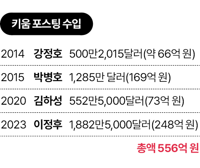 누적 포스팅 수입만 약 556억 원