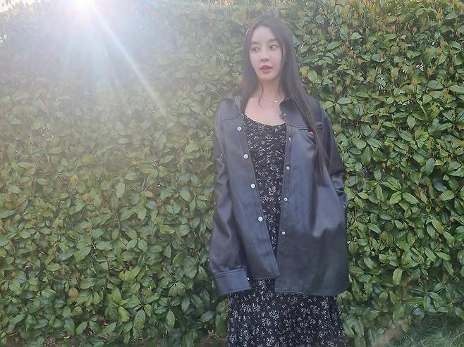 햇살이 사선으로 내리쬐는 초록 담벼락 앞, 정유미가 포착됐다. 오랜만에 공개된 인스타그램 속 그녀는 고요한 듯 강렬한 존재감으로 다시 한번 대중의 시선을 사로잡는다. 느슨하게 걸친 오버사이즈 가죽 셔츠와 잔잔한 꽃무늬의 블랙 드레스는 이질적인 듯 완벽하게 어우러진다. 소녀 같은 무드와 시크한 터치가 공존하는 룩이다.