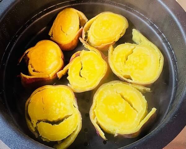 특히 이 과정은 수분이 마르지 않아 고구마의 식감도 더욱 촉촉하게 만들어주고, 껍질도 잘 벗겨지는 부가적인 장점까지 생긴다. 구운 고구마처럼 표면이 딱딱하게 굳지 않고, 삶은 고구마보다 맛이 밍밍하지 않아 단맛과 식감의 균형이 가장 뛰어난 조리법으로 평가받는다.