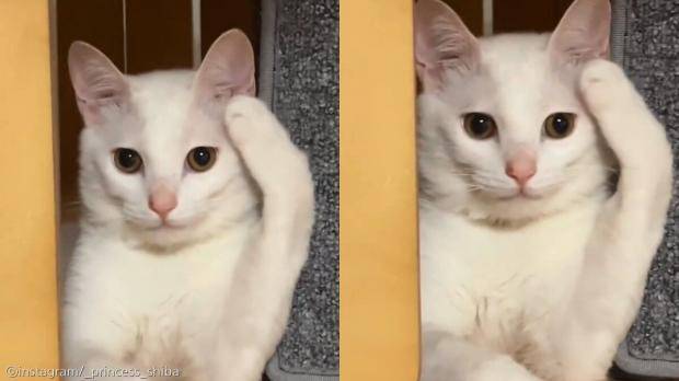 웃음과 경악 사이, 고양이의 '충성' 경례 자세