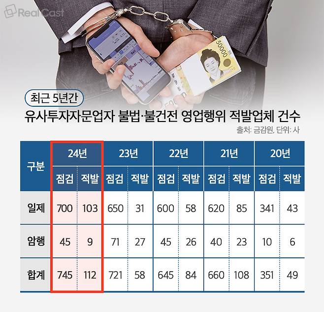 점검 결과 745곳의 유사투자자문업자 중 112곳에서 130건의 규제를 위반한 것으로 조사됐습니다.