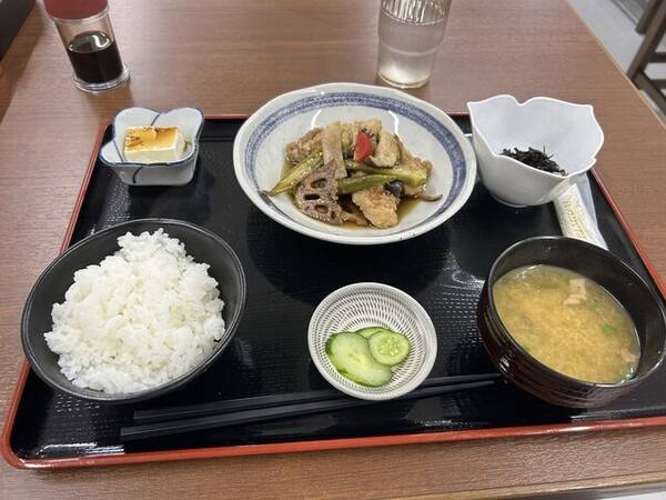 월요일: 현미밥 + 된장국 + 오이무침 + 두부부침