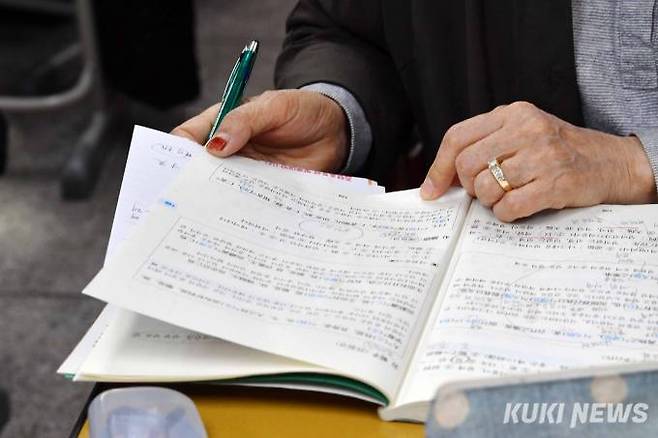 영어 수업시간 볼펜 색깔을 바꿔가며 열심히 필기 하던 황금자(65) 학생은 “남편과 아들이 대학만 들어가면 4년 등록금은 걱정하지 말라고 했다”면서 “대학에 가면 열심히 공부도 해야겠지만 즐겁게 학교생활을 하고 싶다. 기대가 크다. 경북 상주에서 9남매 중 맏딸로 태어나 동생들 공부시키느라 나만 학교를 못 다녔다. 이제는 가슴 속 한이 다 풀어졌다”고 말했다.