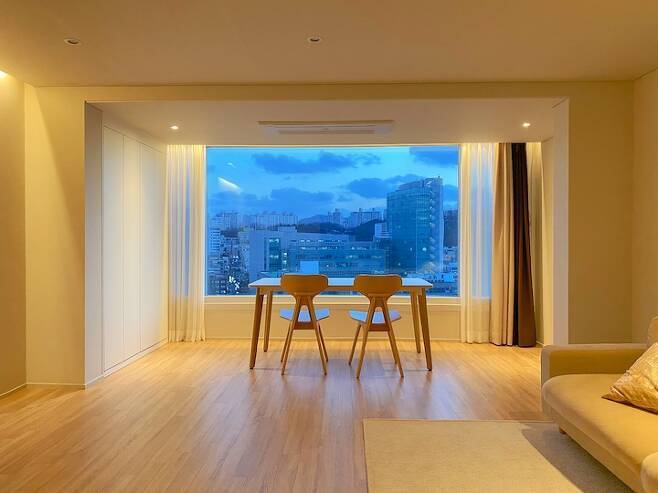좋은 호텔이나 리조트를 다녀오면 객실에서 바라보던 시티 뷰나 자연 경관들이 늘 마음에 아른거렸고 좋은 추억이 되었던 것 같기도 하고요. 그래서 집을 구할 때, 조망권과 남향 이 두 가지를 중점으로 보았습니다. 한 가지 더 욕심내어서 가끔 산책할 수 있는 공원이나 산이 근처에 있으면 좋을 것 같다는 생각을 했어요.