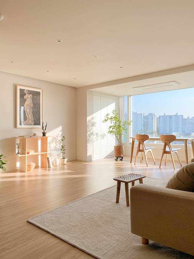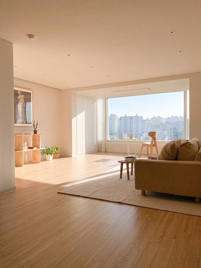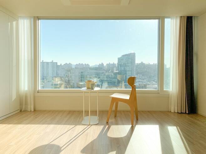 새로 이사한 집은 남향집인데요. 앞이 시원하게 트여 있어 햇빛이 굉장히 잘 드는 곳입니다. 집을 구하면서 조망권을 중요하게 봤어요. 인테리어에서 한 단계 더 나아가면 조망권이라는 생각이 들었거든요. 요즘 말로 ‘뷰 맛집’이라고 하죠.