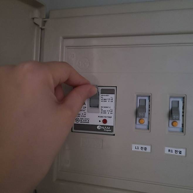 그리고 나서 누전 차단기의 토글 버튼을 올려봅니다.