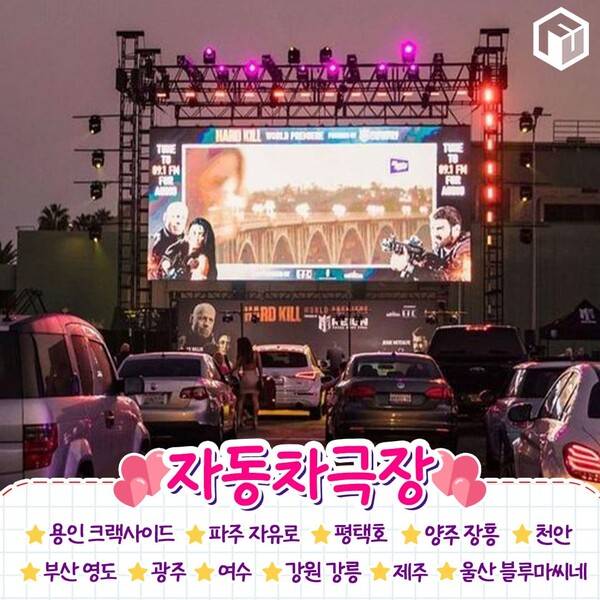 전국 곳곳에서 운영중인 자동차 극장은 일반 영화관에 비해 대체로 늦은 밤까지 영화를 상영합니다. 대부분 차량 1대 당 입장료가 산정되므로 일반 영화관의 2인 티켓과 큰 금액 차이도 없죠.