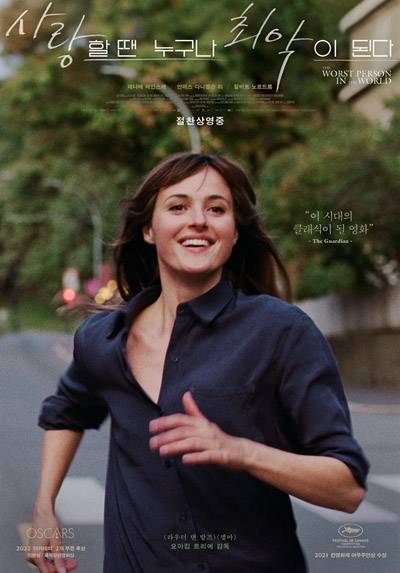 "10년 동안 본 영화 중 최고였다. 완전한 걸작"(리차드 커티스 감독), "이 세상 최고의 영화"(폴 토마스 앤더슨 감독)라는 극찬을 받은 영화는 요아킴 트리에 감독의 <사랑할 땐 누구나 최악이 된다>이다. 나 또한 재미있게 보긴 했지만, 인용한 감독들만큼 열광하지는 않았다. "요아킴 트리에는 로맨틱 코미디의 새로운 기준을 제시했다"는 미국 ABC뉴스의 평가가 개인적으로는 무난하게 받아들일 만한 수준인 듯하다.