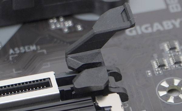 한편, PCIe 4.0 x16 슬롯의 확장 카드 잠금/ 풀기용 레치는 대형화된 그래픽 카드나 확장 카드와의 간섭을 줄여 보다 손쉽게 작동할 수 있도록 크게 돌출시킨 PCIe EZ-Latch 디자인이 적용되었다.
