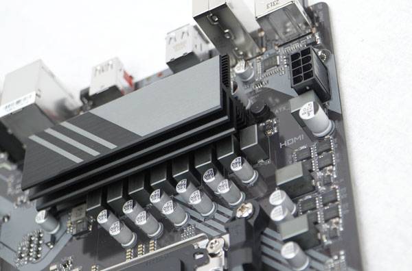 아무튼, 기가바이트 B650M K 제이씨현 메인보드는 CPU 코어 전담 8페이즈, iGPU 및 메모리 컨트롤러 담당 2페이즈, CPU 연결 PCIe Lane 1페이즈로 총 11페이즈 전원부가 구성되었다. 이중 CPU 코어를 담당하는 8페이즈에는 안정성 향상을 위해 방열판을 추가한 모습도 확인된다.