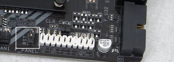 USB 3.0 Type-A 헤더 뒷편에는 시스템 제어를 위한 전원(LED)/ 리셋/ HDD(LED) 연결용 헤더와 함께 별도의 리셋용 2핀 헤더가 배치되어 있다. 해당 헤더는 기본 리셋 기능외에 바이오스에서 설정을 바꿔 (A)RGB LED On/ Off, 키보드 입력 없이 바로 BIOS 진입, 바이오스 안전 모드 부팅 기능으로 용도를 변경할 수 있다.