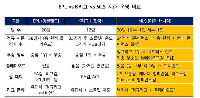 ⚽ MLS 시즌 운영, 유럽·K리그와 뭐가 다를까요. 비교 해봤습니다. go...go...