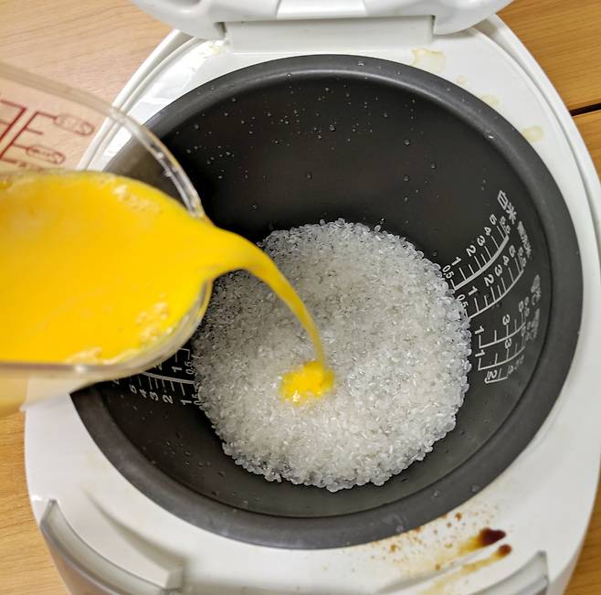 밥솥에 쌀 위에 계란을 부어 밥 짓는 법, 왜 좋을까?