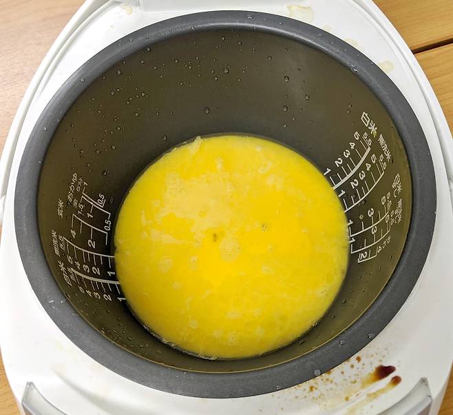 밥이 완성되면 계란을 잘 풀어 섞어 먹는다.