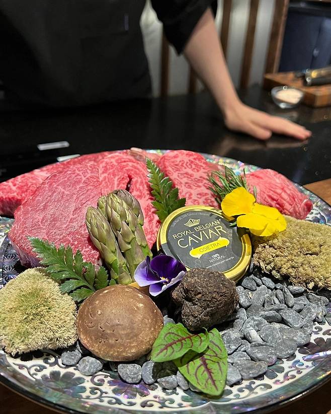 압구정로데오역 인근에 위치한 한우 오마카세 전문점. 100% 예약제로 디너만 운영하고 있다. 캐비어, 트러플, 우니 등 고급 식재료를 활용해 고기맛에 고급스러운 변주를 주었다. 소금, 와사비, 토마토소스, 홀그레인, 페퍼소스, 대파소스 등 부위마다 어울리는 소스를 차별화한 것도 독특한 장점. 바 형태의 테이블 좌석과 룸으로 구성되어 있어 모임의 성격에 따라 선택하기 좋다.