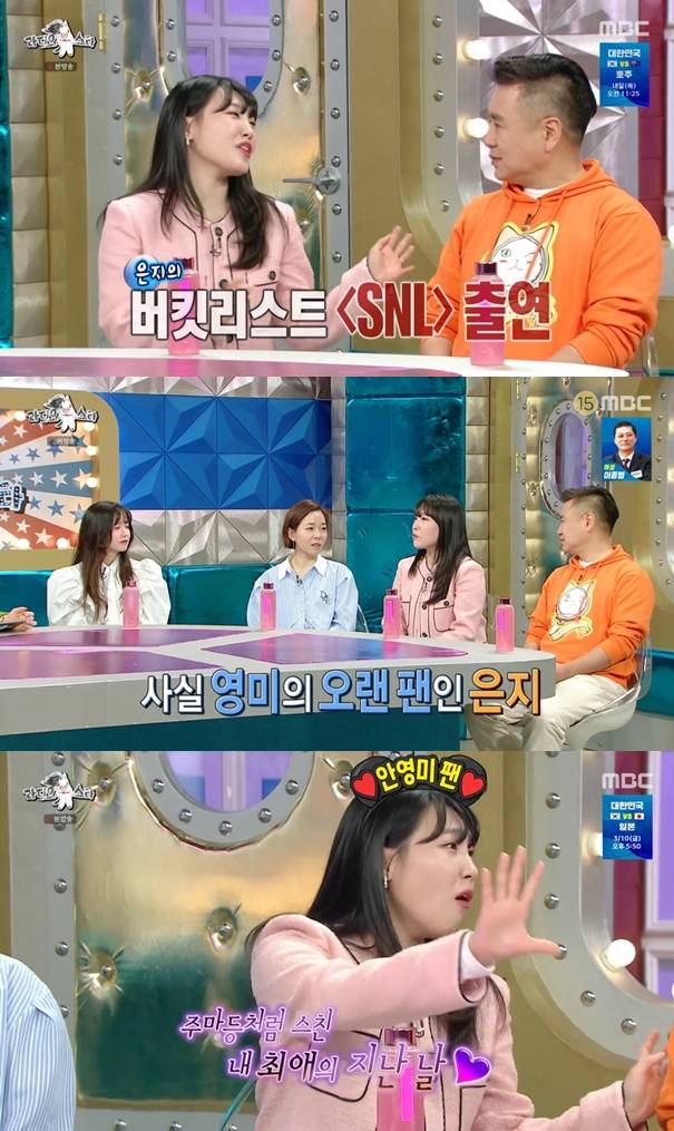 이때 MC 김국진이 "최근 꿈에 그리던 인생 업적 하나를 이뤘다고"라며 물었다. 이은지는 "제 버킷리스트 중 하나가 코미디언 지망생 당시 'SNL'에 출연하는 게 꿈이었다"고 밝혔다.