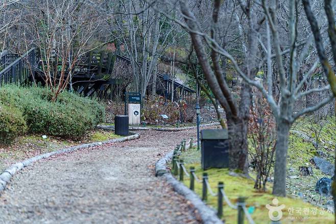 수목원의 산책로는 크게 나무내음길과 숲 속바람길로 나뉩니다. 나무내음길은 우드칩이 깔린 길로 주요 정원과 연결되어 있어 처음 방문하는 분들도 부담 없이 걸을 수 있습니다. 숲 속바람길은 숲의 깊이를 느끼며 걷는 코스로, 겨울 숲의 고요한 분위기를 즐기기에 좋습니다.