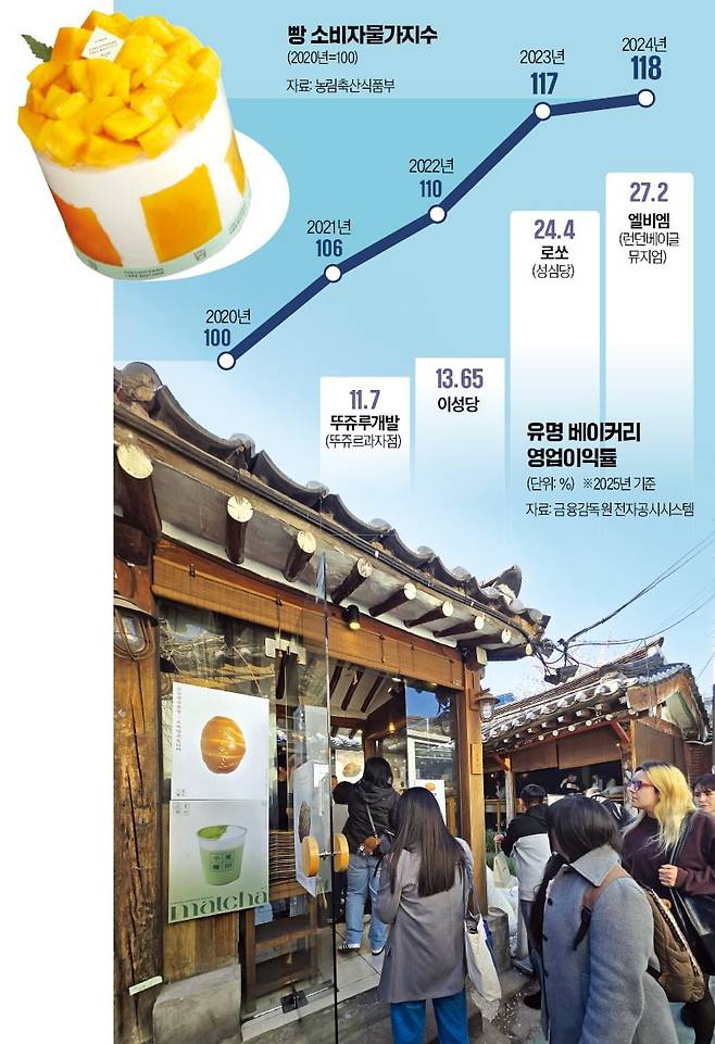 그럼에도 유명 베이커리 매장 앞 대기 줄은 점점 더 길어진다. 인기 제품을 먼저 맛보기 위해 문이 열리기도 전에 수십 명이 줄을 서 있는 모습은 흔한 풍경이 됐다. 값을 올려도 어지간해선 수요가 줄지 않으니 인기 베이커리 매장의 수익은 계속 상승세다. 작년 런던베이글뮤지엄을 운영하는 엘비엠은 영업이익률 27.2%를 기록했다. 구글·애플에 버금가는 수준이다. 베이글, 도넛, 소금빵 등 비교적 단순한 메뉴로 히트를 치는 매장이 늘면서 창업시장에선 ‘특별한 기술이 없으면 제빵학원을 다니라’는 말이 나올 정도다. 불황에 소비자들은 지갑을 닫고 있다는데, 프리미엄 베이커리는 여전히 문전성시를 이루는 이유가 뭘까.