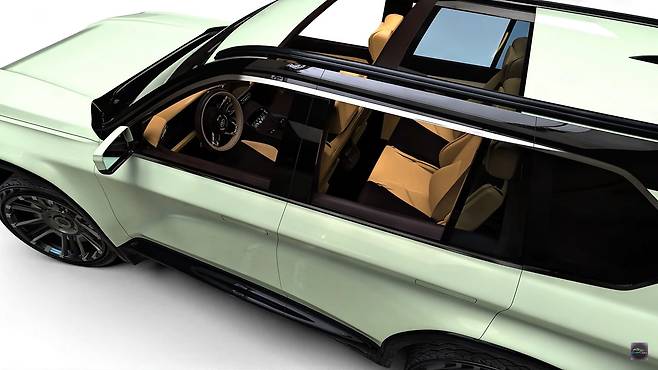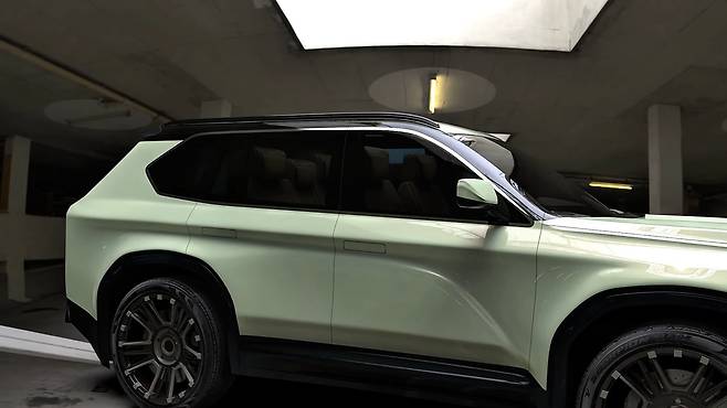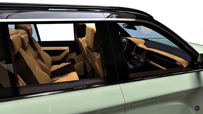 측면은 도어 핸들과 오목하게 들어간 대형 블랙 휠이 고급스러움을 강조하며, 실내는 가죽 소재와 미니멀한 디자인으로 마감됐다. 후면은 RAV4의 테일램프 디자인을 대형 SUV에 맞게 확장한 모습이다.