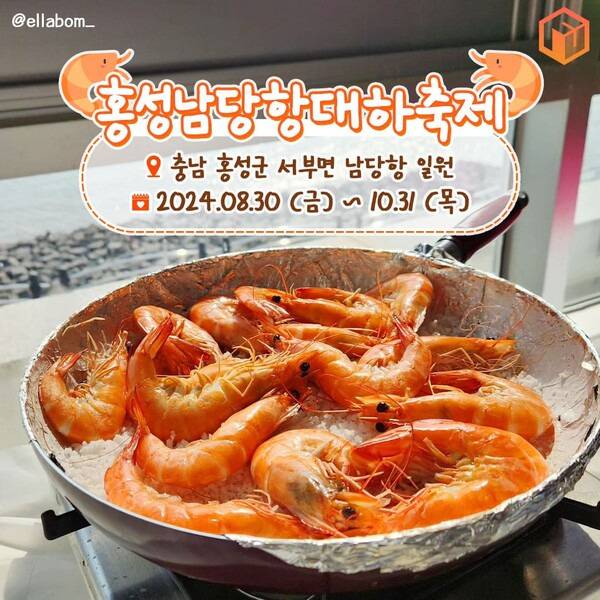 매년 가을 대하철이 되면 홍성 남당항 일원에서는 홍성 남당항 대하축제가 개최됩니다. 2024 홍성 남당항 대하축제 일정은 8월 30일 금요일부터 10월 31일 목요일까지 약 한 달간 진행됩니다.