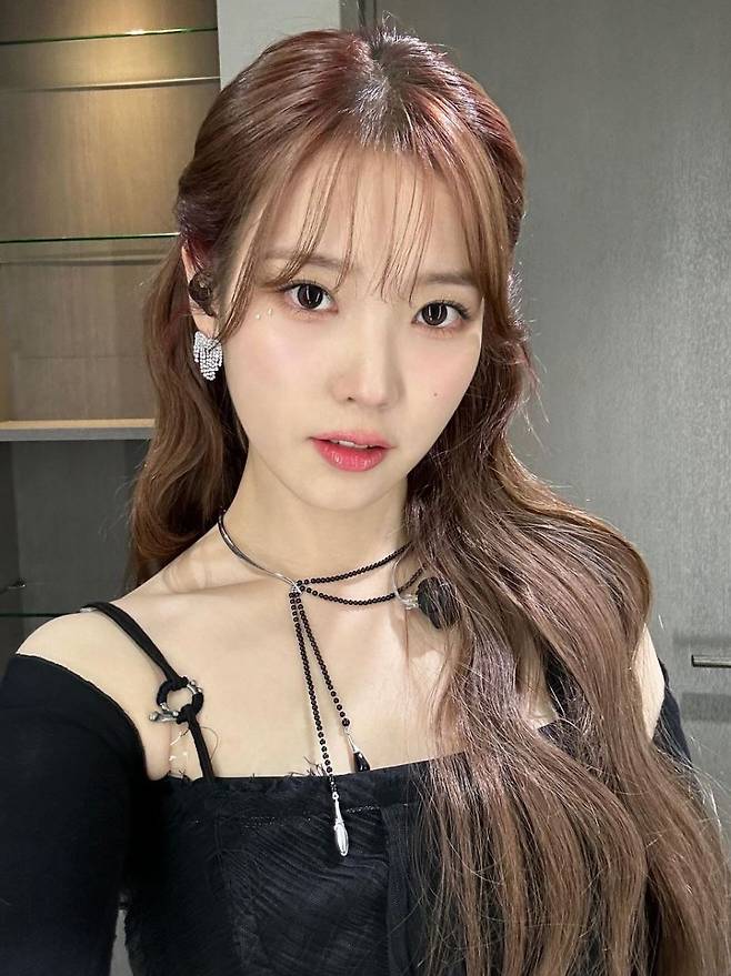 아이유의 작은 얼굴을 더 돋보이게 했는데요.