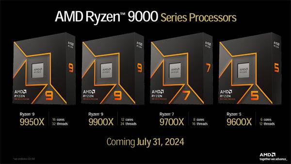 라이젠 9000 시리즈는 알려진 것과 같이 라이젠 9 9950X/ 라이젠 9 9900X/ 라이젠 7 9700X/ 라이젠 5 9600X 4종이 7월 31일 출시된다.