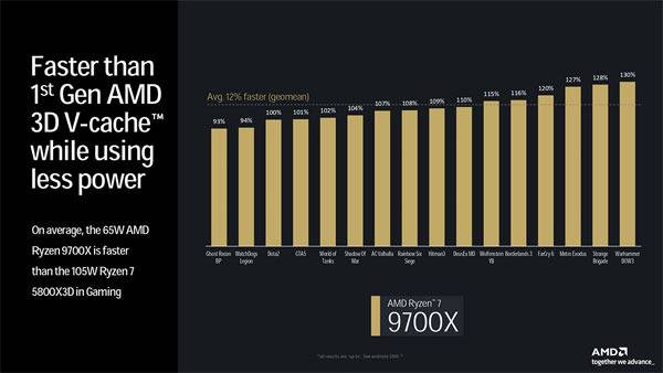 라이젠 9 9950X를 제외한 모델들의 TDP를 낮춘 상태로도 최소 11%에서 최대 22%까지 높은 성능을 발휘한다. 얼마전 라이젠 9700X의 TDP를 120W로 상향을 고려 중이라는 루머성 소식이 덜았지만, 결과적으로 처음 발표된 TDP 65W 스펙이 유지된다.