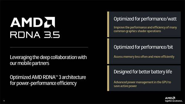이번 행사에서는 RDNA3.5 아키텍처에 대한 내용도 공개되었다. 공식 발표전 루머로는 전성비 개선에 중점을 둔 아키텍처로 에상되었는데, 실제 공개된 내용 역시 전성비 개선에 중점을 두고 있다.