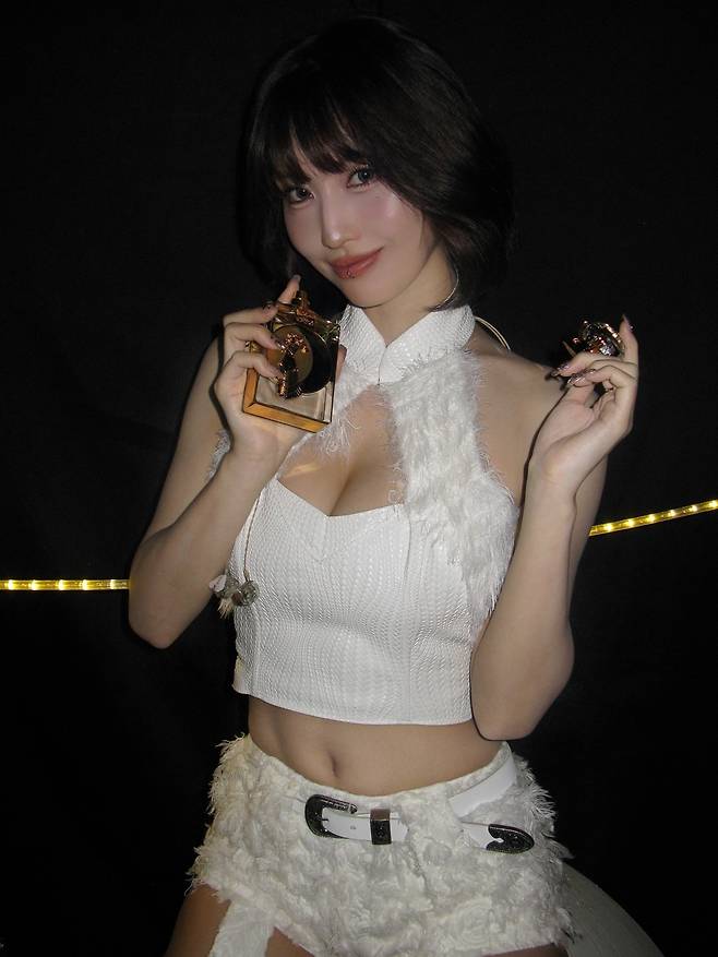 특히 손에 쥔 향수 보틀은 금장 장식과 함께 시선을 끌며, 룩 전체에 포인트 역할을 톡톡히 한다. 유저들 사이에서는 “이 정도면 향수 광고 화보다”, “천사 컨셉의 끝판왕” 등의 반응이 줄을 이었다. 어두운 배경 대비 화이트 룩이 주는 강렬한 대비 덕분에 모모의 미모와 스타일이 더욱 부각되었다는 평이다.