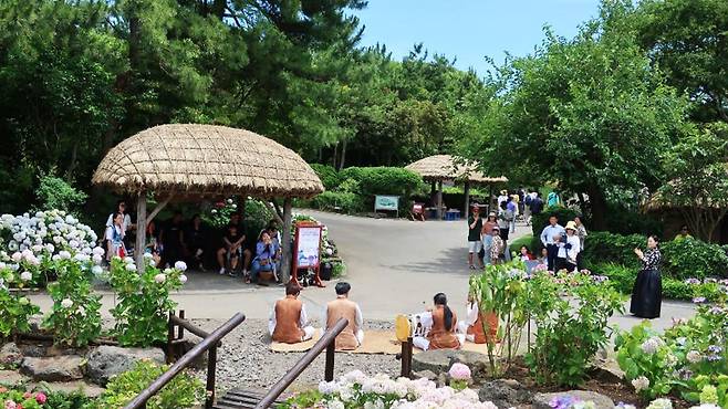 제주민속촌의 수국 정원은 그 자체만으로도 장관이지만, 이 축제를 더욱 특별하게 만드는 건 ‘전통 복식 체험’이다.