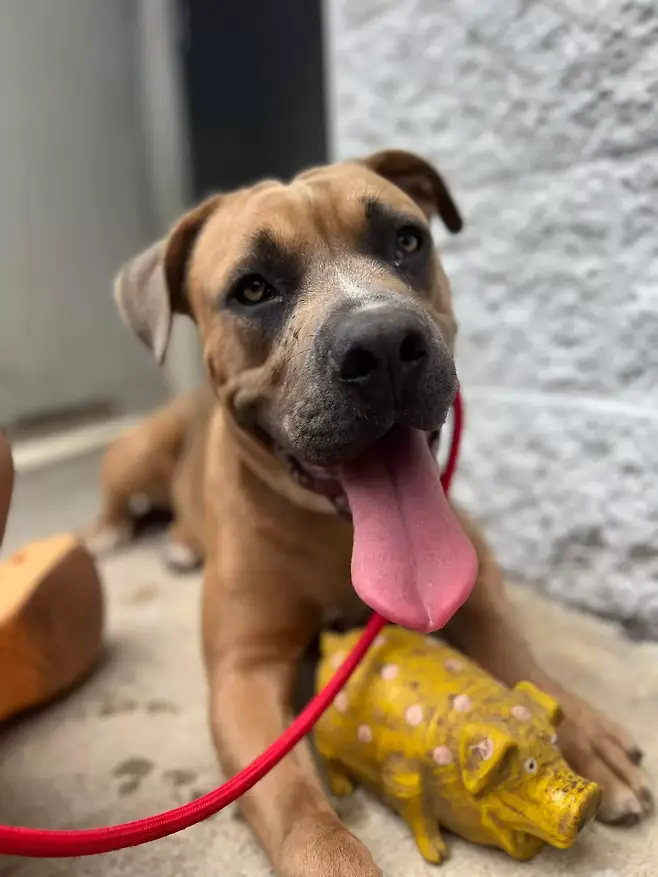 수제트씨는 “누군가가 소리가 나는 돼지인형을 녀석에게 던져주었고, 그 뒤로 돼지인형과 녀석은 가장 친한 친구가 되었습니다.”라고 말했습니다.