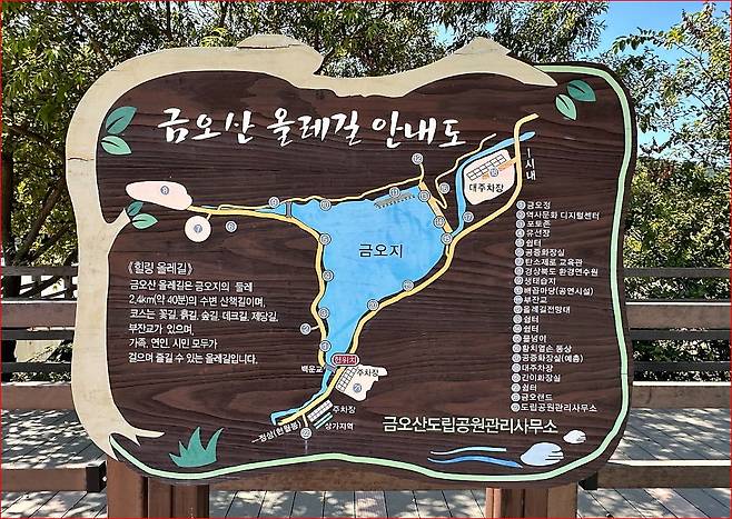 코스 요약: 금오지 순환 산책로 (총 2.7km / 약 1시간 소요)
