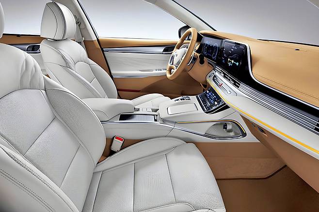 17인치 타이어 기준 정부 공인 복합 연비는 16.2km/L(도심 16.1, 고속 16.2)로, 5m급 준대형 세단이라는 점을 감안하면 ‘연비 괴물’에 가까운 수치다.