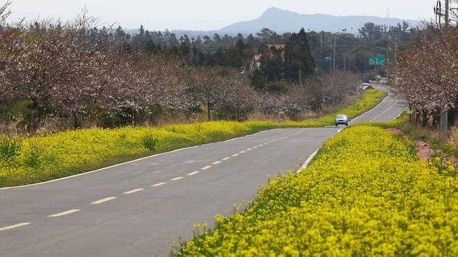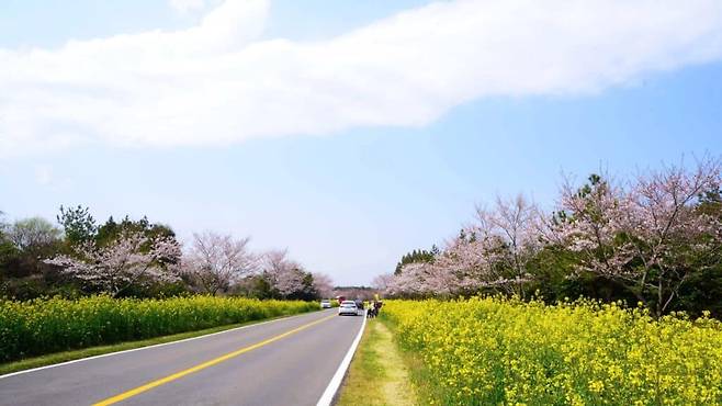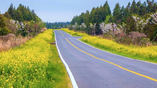 하지만 단순한 꽃놀이에 그치지 않고, 자동차를 타고 천천히 달리며 유채꽃과 벚꽃을 동시에 감상할 수 있는 길이 있다.
