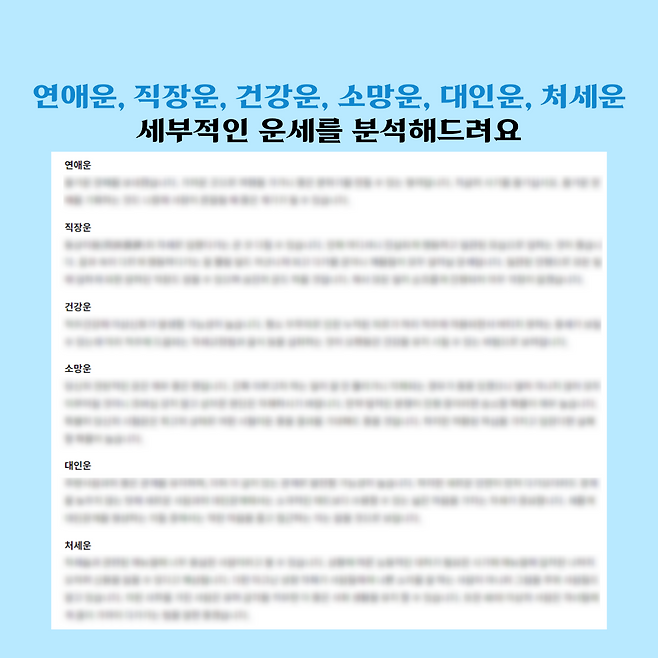 당신이 어떤 사람을 만나게 될지, 이상적인 연애를 위한 조건은 무엇인지, 사랑에서 피해야 할 행동까지 세부적으로 안내합니다.
