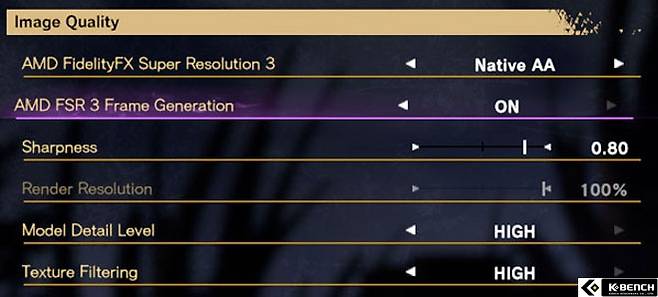 하지만 이번 FSR3에 이르러서 도입된 네이티브 AA모드는 FSR 옵션 하위로 AA를 조절할 수 있게 되어 더욱 퀄리티를 높이고 컨트롤할 수 있게 됐다.
