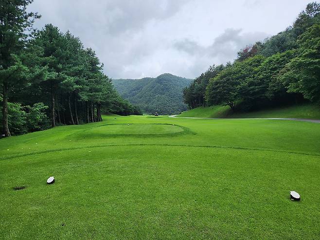 주로 3개 위치의 티잉 그라운드로 블루, 화이트, 옐로우, 레드 마커가 있습니다. 관리 상태는 양호합니다. 최근 제가 신경 써왔던 부분은 티 박스가 평평한 곳인지 아닌지 입니다. 슬라이스 홀이라는 것은 라이가 평평하지 않을 거라고 생각하기 때문입니다.