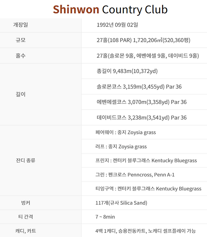 - 코스: 신원 CC 에벤에젤/데이비드 코스
